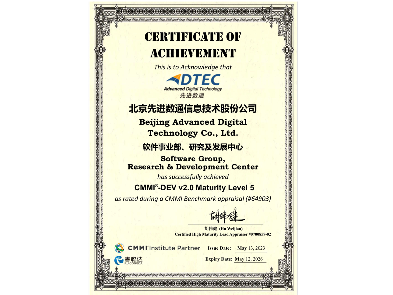 Ezpay先后取得CMMIL5、软件能力成熟度五级(SPCA 5)、信息系统建设和服务能力评估体系(CS)5级、ITSS成熟度一级、信息系统安全集成服务资质二级、信息系统安全运维服务资质二级、国产化信息系统集成和服务能力评估四级(LS4)、北京市企业技术中心等资质认证,并取得ISO9001、ISO20000、ISO27001、ISO14001、ISO45001、ISO22301、ISO37001、ISO28001、GBT29490等标准体系认证,具备行业领先的技术开发、工程实施及服务保障能力。