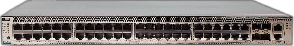 ·48个 10/100/1000Base-T 以太网端口,4 个万兆 SFP+