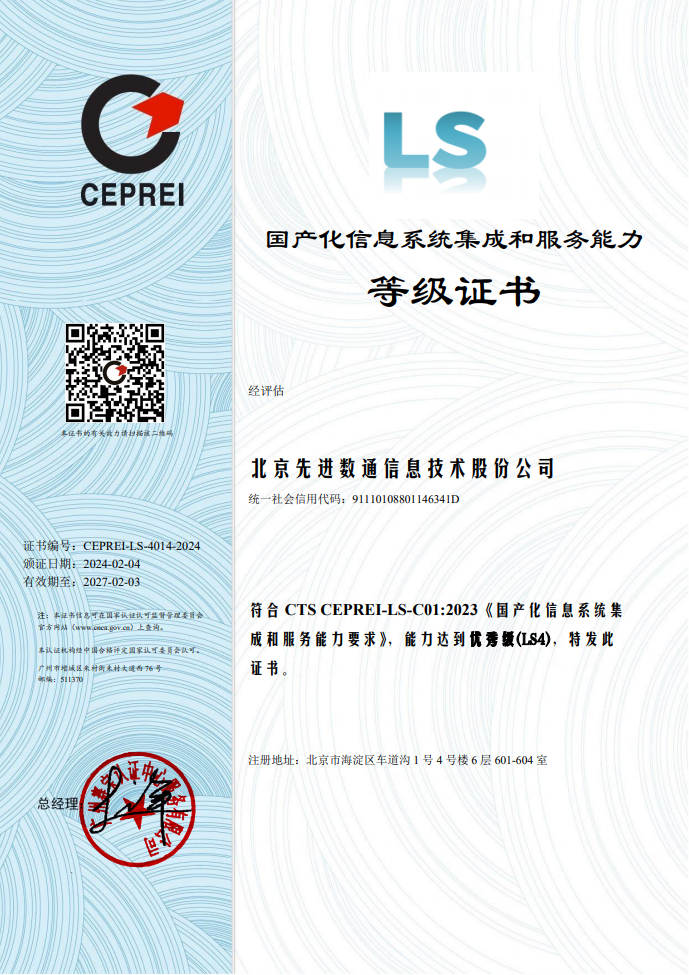 国产化信息系统集成和服务具有关乎国家科技开展和社会信息安全的特殊性,在行业准入方面具有特殊要求。截至现在,国产化信息系统集成和服务能力共划分为四个等级,从低到高依次为LS1级(初始级)、LS2级(基本级)、LS3级(良好级)、LS4级(优秀级)。认证过程经过严格的审核和评估,对企业综合能力、设计研发能力、集成能力、技术支持能力、管理能力等多项指标进行科学有效的考核评价。本次认证的顺利获得,不仅体现了业界对Ezpay研发能力、创新能力、企业管理能力等多方面认可,更彰显了企业的综合实力及核心竞争力已得到进一步提升。
