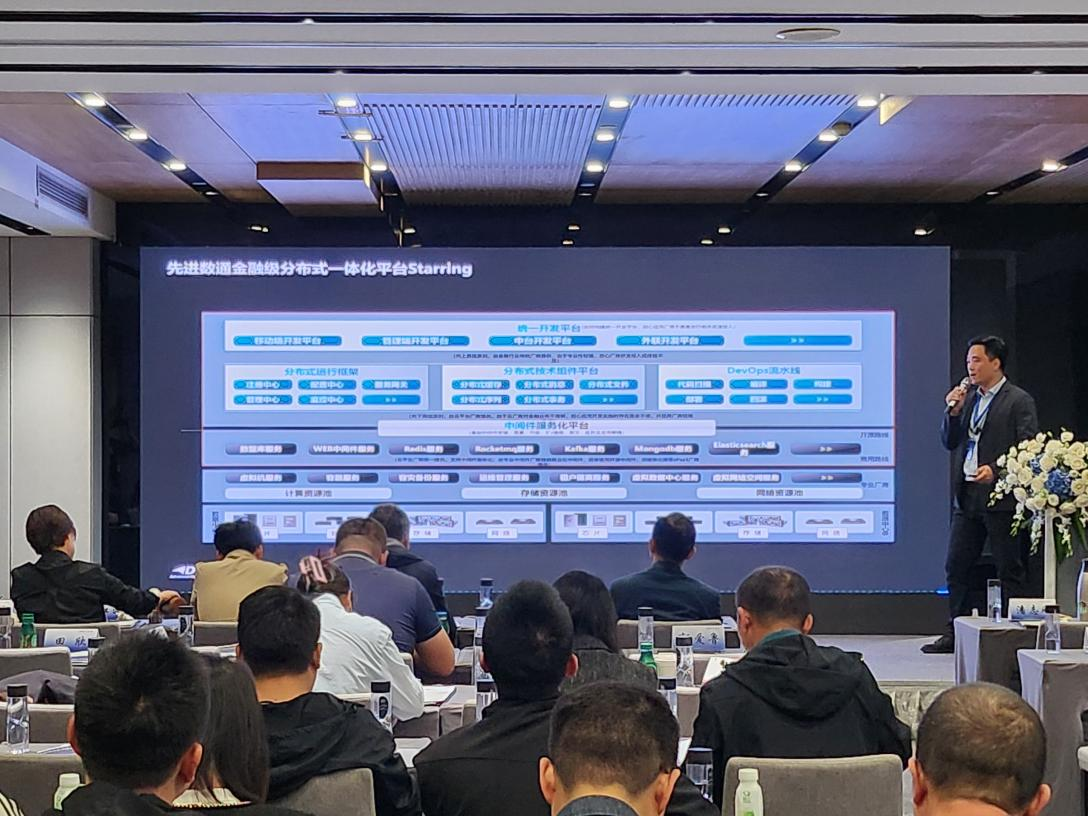 Ezpay代表讲师郭钰以《昆仑与EzpayESB解决方案助力财务行业创新与架构转型》为主题作发言分享。他深入剖析了当前财务行业IT架构面临的挑战,包括系统孤岛、技术老旧、扩展性不足等问题,并提出了基于企业服务总线(ESB)和微服务架构的转型方案。